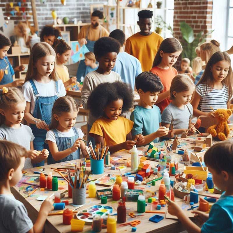 Diese Werkstatt haben wir für experimentierfreudige Kinder eingerichtet. Ihr könnt hier malen, werken, töpfern und vieles mehr !
